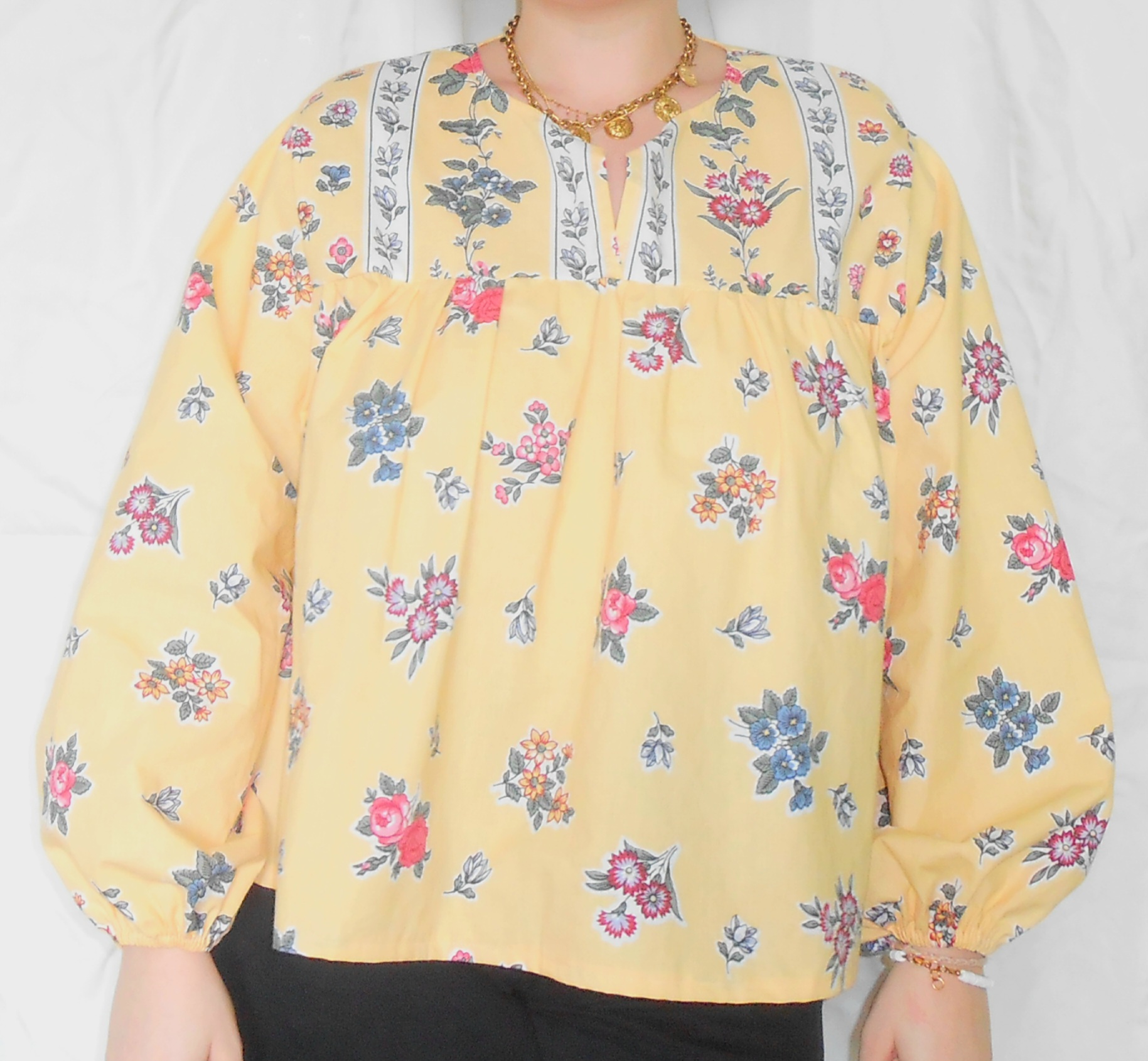 La blouse Brigitte est une pièce au style ample et fluide, idéale pour allier confort et élégance. Sa coupe légèrement évasée offre une silhouette décontractée tout en restant féminine. Les manches longues et bouffantes, resserrées aux poignets, apportent du volume et du mouvement. Le haut de la blouse est structuré par un empiècement décoratif au niveau du col, soulignant un détail travaillé. Grâce à sa forme polyvalente, elle peut être portée aussi bien pour une tenue quotidienne que pour des occasions plus habillées. Une pièce intemporelle qui s’adapte à tous les styles et envies.